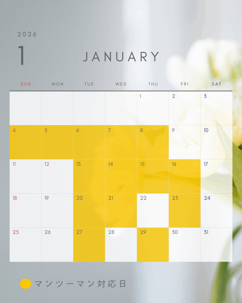 【1月】マンツーマン対応日のお知らせ
